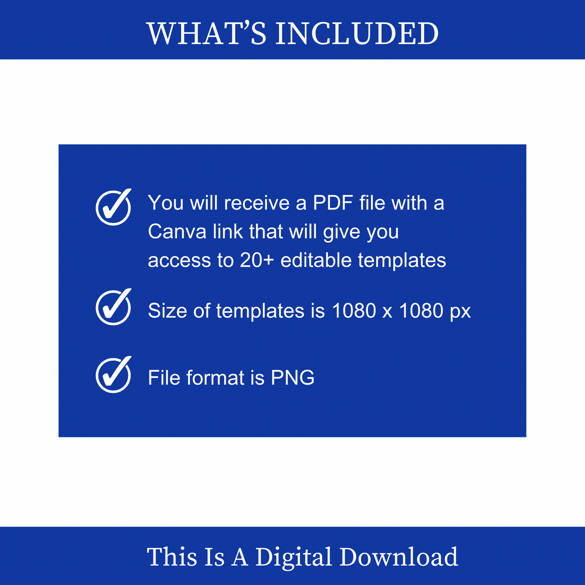 - Fully Editable in Canva – Customize text, fonts, and colors (1080x1080 px PNG files)