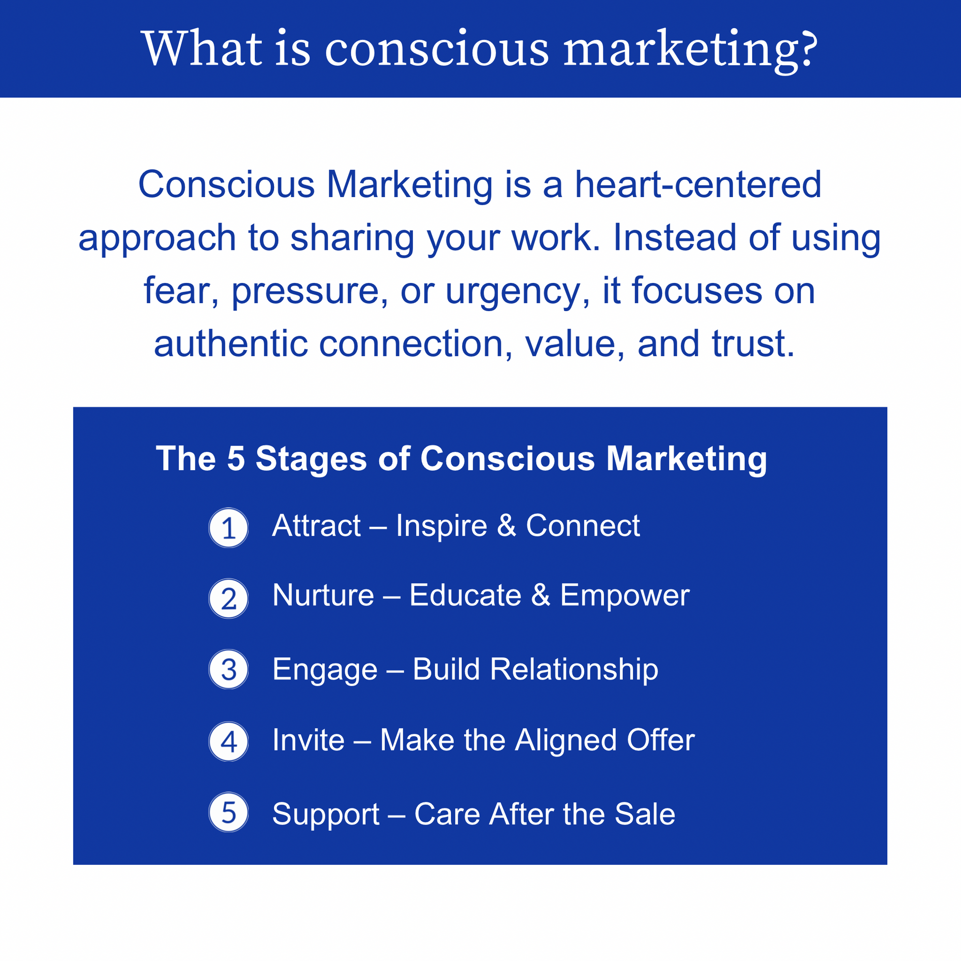 - Strategic Layouts – 20+ templates aligned with the 5 Stages of Conscious Marketing: Attract, Nurture, Engage, Invite, and Support.